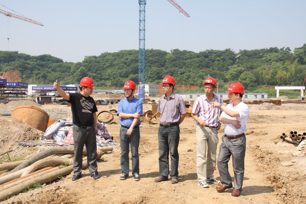 吴宏平副院长一行视察了宁海湾游艇码头护岸工程(右侧)施工现场,倾听施工项目经理和监理部负责人工程建设情况汇报,并仔细询问了施工生产安全措施落实情况、灌注桩施工情况、工艺工序控制情况、现场质量安全控制情况、工地工作生活情况等。