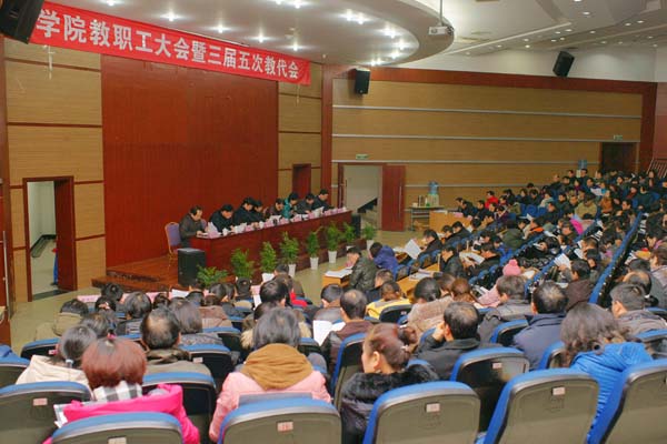 2月14日上午,学院隆重召开三届五次教职工暨工会代表大会。大会主席团成员由丁坚钢、叶舟、刘志华、黄暖、刘进宝组成。郑贞宝、刘进宝、刘志华分别主持了会议。