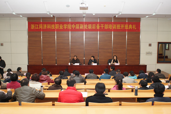 各党总支、直属党支部负责人出席典礼。全院科级干部、中层副处级后备干部、来自滨江高教园区兄弟高校的干部共同参加了开班典礼。