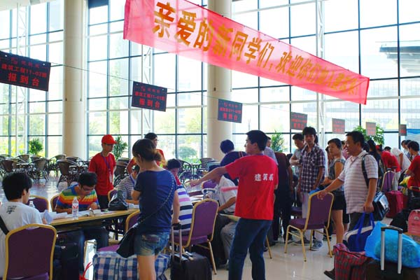 今年我院共录取学生1775人,分别来自江苏、安徽、江西、山东、福建、湖南、甘肃、河北、河南及浙江等十个省,路途遥远的新生提前几天就已来到学校,考虑到人生地不熟,各新生班主任早早地在录取工作结束后就主动通过QQ、短信等方式自己班的学生进行了联系,提醒他们关于报到的相关信息。报到当天,学院一早就派出了数辆校车,随同接站老师、志愿者分赴城站火车站、萧山火车南站、汽车东站、汽车南站等地迎接新生。校园内自然更加热闹,各系都在指定的地方早早搭好了报到台,每个系都派出了老生从校门口一路陪同新生及家长履行报到流程,志愿者则在显著的地方设置了服务台、咨询台,为新生提供咨询及答疑,并分发了特别印制的《新生宝典》,以帮助新同学更快更好地融入到新环境。设置在行政楼大厅的总服务台和绿色通道也为有需要的新生及家长提供了便捷服务。在各部门的通力合作下,整个校园秩序井然,报到工作有条不紊地开展着,截止到晚上9点,新生实际报到人数为1704人,报到率达到了96%。