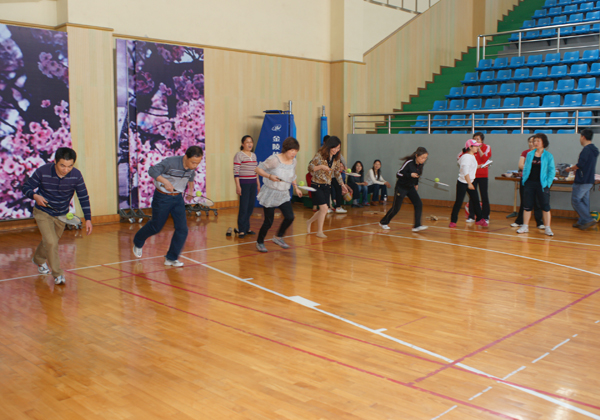 本届运动会不仅组织了学生进行田径比赛,还组织了教职工进行趣味项目比赛。全体教职工分别参加了定点投篮、摸石头过河、夹球跑、托球赛以及保龄球比赛五个项目,虽然是趣味项目,可参加比赛的教职工们还是体现出了你追我赶、不服输的竞技精神,无论是年轻人还是年长者,大家都体现出了积极参与的劲头,充分体现了全民健身的体育风尚。