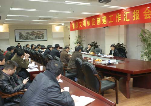 院党委书记丁坚钢就我院开展省级文明单位创建工作的情况进行了汇报,内容涉及到具体措施、内涵建设、创新载体和合作共建等几个方面,指出学院把创建省级文 明单位作为建设一流高职院校的重要内容,始终是学院工作的重点。王晓阳副书记认为,学院长期不懈地抓地抓文明单位创建工作,把文明建设当作推动学院内涵建 设的有效抓手,对学院发展起到了推动作用。