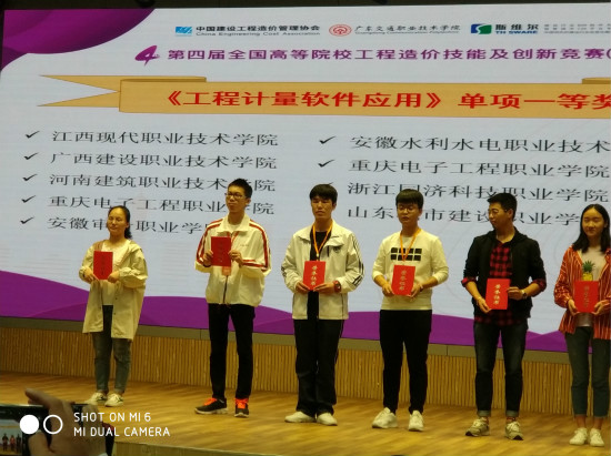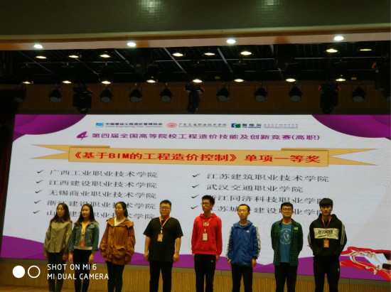 本次大赛,我校建筑工程系工程造价专业派出宋蓉晖、孔德娟两位教师指导史晨晖、沈海雯、华荧洁等3名同学,赴广州参加比赛,最终获得全部四个奖项中的一等奖2项、二等奖1项的佳绩,无论获奖数量还是获奖质量都位列同类高校前列。