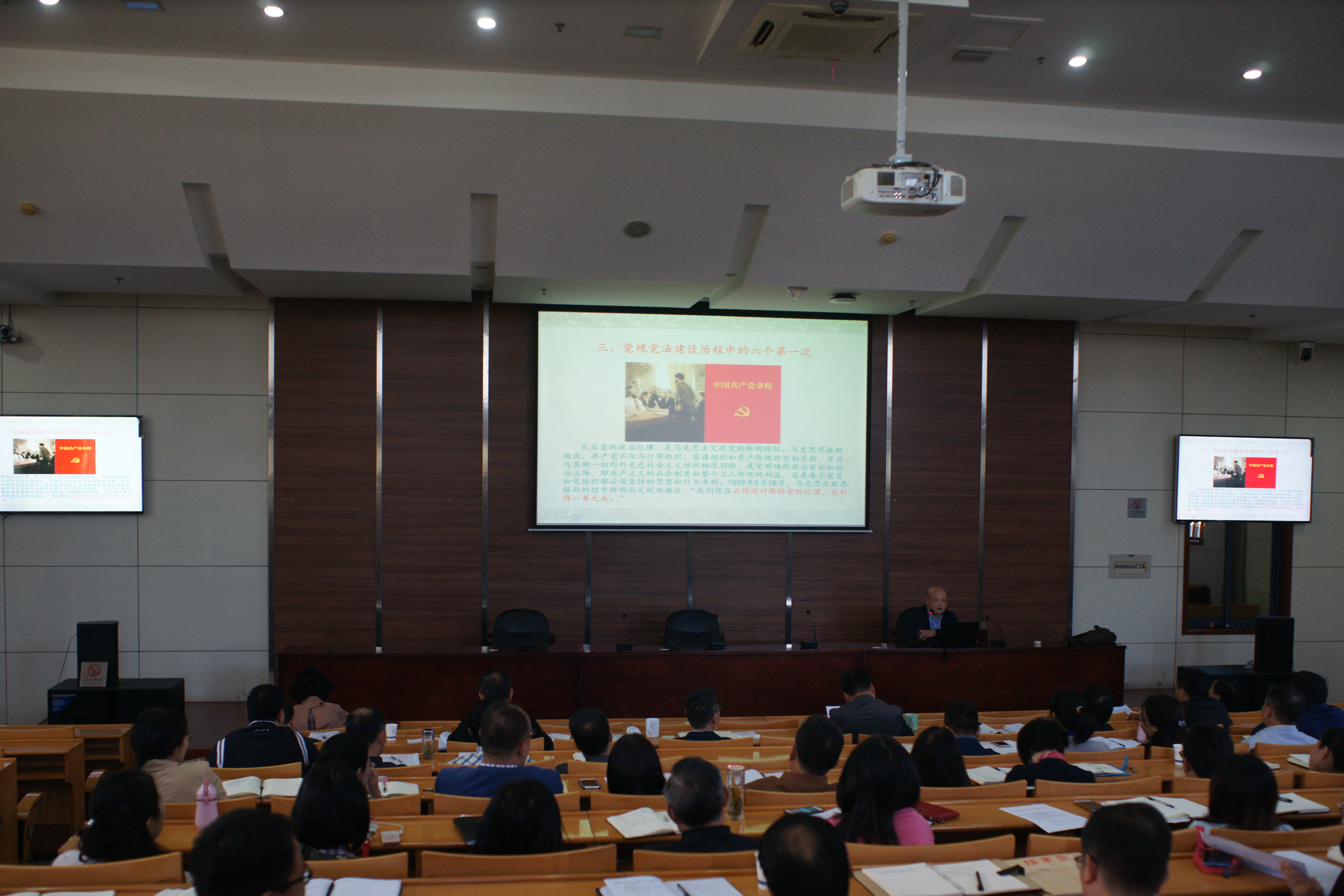 会议邀请了中共浙江省委党校马克思主义研究院副院长王侃教授,为全体与会人员作了《学党章守纪律讲规矩——中国共产党纪律处分条例解读》的讲座。王教授从党章党纪与规矩、遵守党纪是现代政党的普遍要求、党规党法建设历程中的六个第一次、《条例》的修订与完善、讲政治规矩要做到“五个必须”等五个方面,对《条例》进行了全面系统的解读。