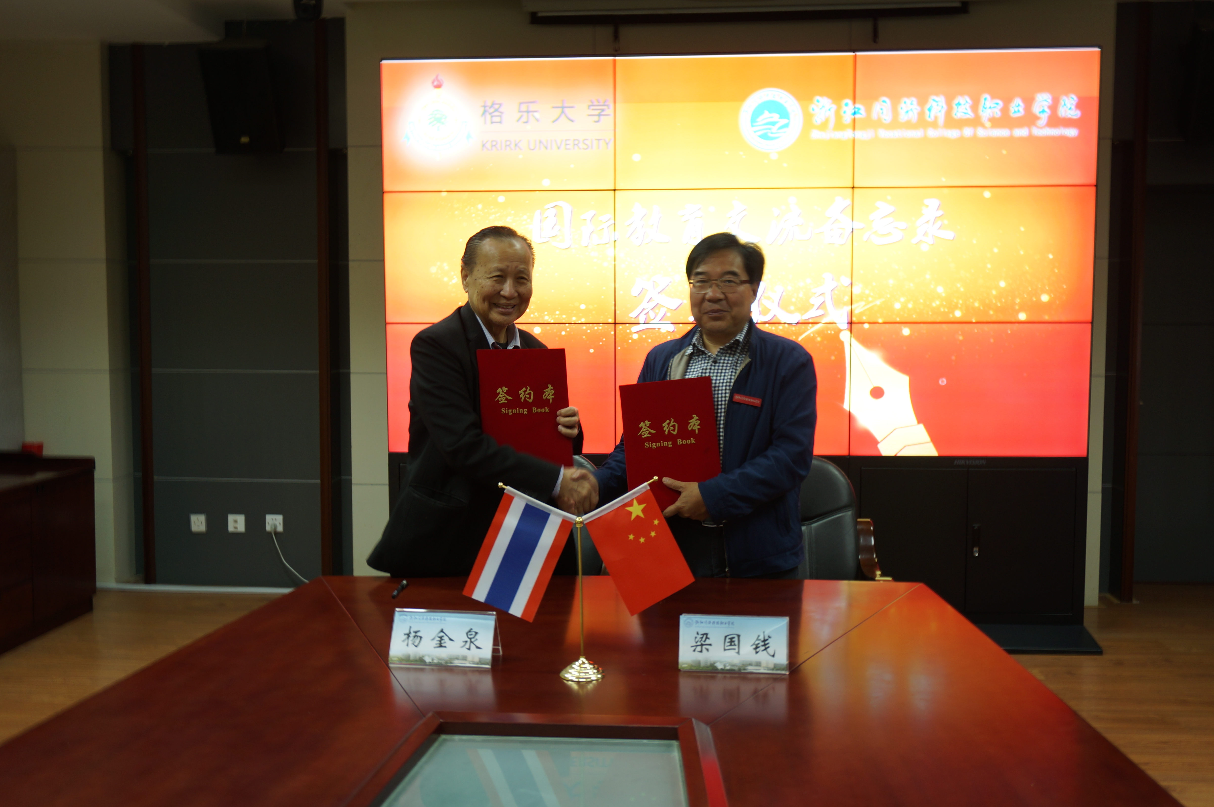 Krasae Chananwongso博士介绍了格乐大学的办学情况和特色,对中国改革开放以来取得的成就和“一带一路”倡议表示了充分的肯定并表达了与我校进行多方面合作的意愿。梁国钱院长对Krasae Chananwongso博士一行的到来表示热烈欢迎,介绍了我校的办学情况以及和国外各校进行合作办学取得的成果,表明了我们愿意和各国名校积极开展多方面合作的态度。