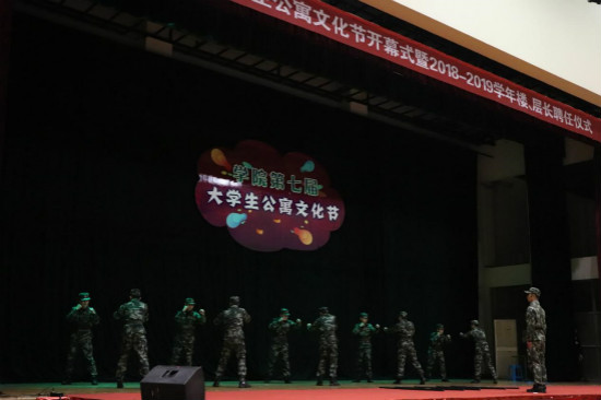 本届公寓文化节在街舞社《卡路里》的舞蹈中拉开序幕。团委副书记傅鑫杰介绍第七届公寓文化节系列活动内容,后勤服务中心主任竺波宣读《学院2018-2019学年公寓楼、层长聘任名单》文件。随后学工部副部长叶乐与竺波、各系党总支书记一起为27名楼层长颁发聘书。期间,学院国旗班穿插表演的应急棍术,展现出气宇轩昂的精神面貌。