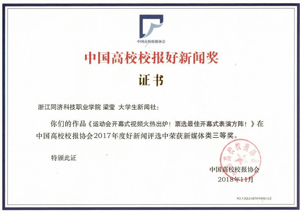 本次评选共有来自28个省市自治区的665所高校校报送的3321篇作品参评。我院校报选送的作品《铸就水利人才培养“金名片》荣获通讯类三等奖。为推动高校新媒体宣传工作的开展,本届评选特设立新媒体作品类别,我院官微作品《运动会开幕式视频火热出炉!票选最佳开幕式表演方阵》荣获新媒体类三等奖。这也是我院官微作品首次获得该级别奖项。
