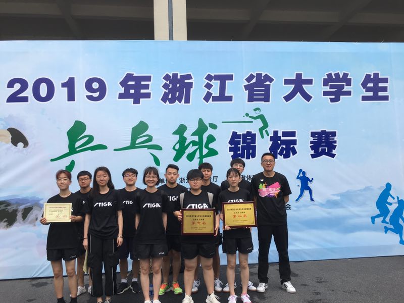 近日,浙江省大学生乒乓球、网球锦标赛落下帷幕,我院代表队在领队基础部主任吕兴虎,总教练章永健,教练王文涛、宋卫军老师的悉心指导下,与来自全省各高校的代表队展开激烈角逐。最终经过奋勇拼搏,我院代表队夺得乒乓球混合双打、网球男子双打两枚金牌,同时还获得乒乓球男子团体第二,女子团体第六,混合双打第三名、女子双打第三名、男子单打与双打第六名,网球男子团体第二名,男子单打第二名和第七名的好成绩。