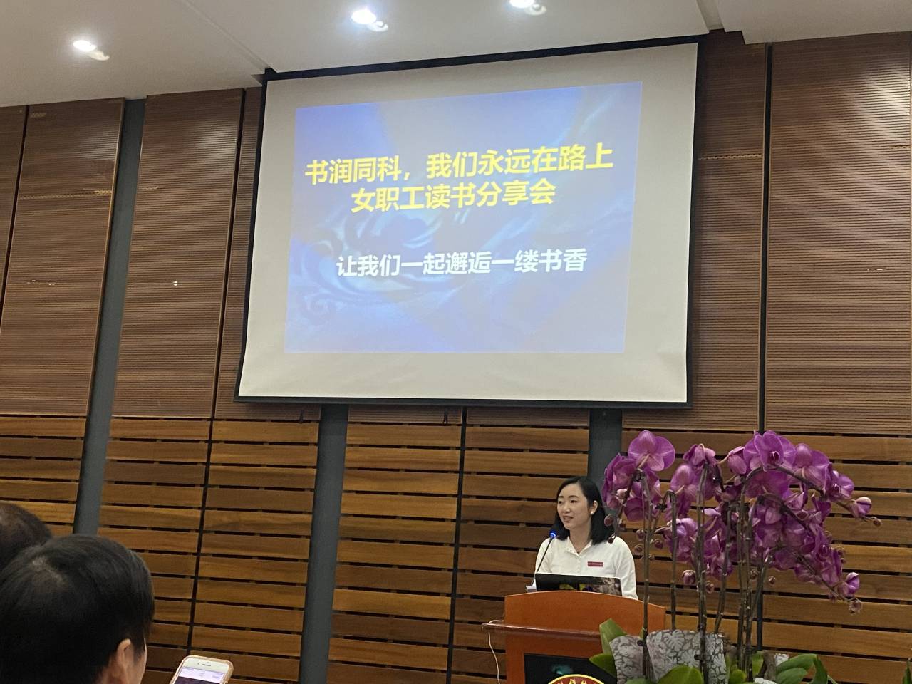 12月22日下午,院工会女工委在学院三楼多功能厅举办了“书润同科,我们永远在路上”读书分享会。学院党委书记江影,党委委员、纪委书记应芬和来自各部门的女职工约50多人参加了本次读书会,读书会由学院工会女工委委员杨昭敏老师主持。