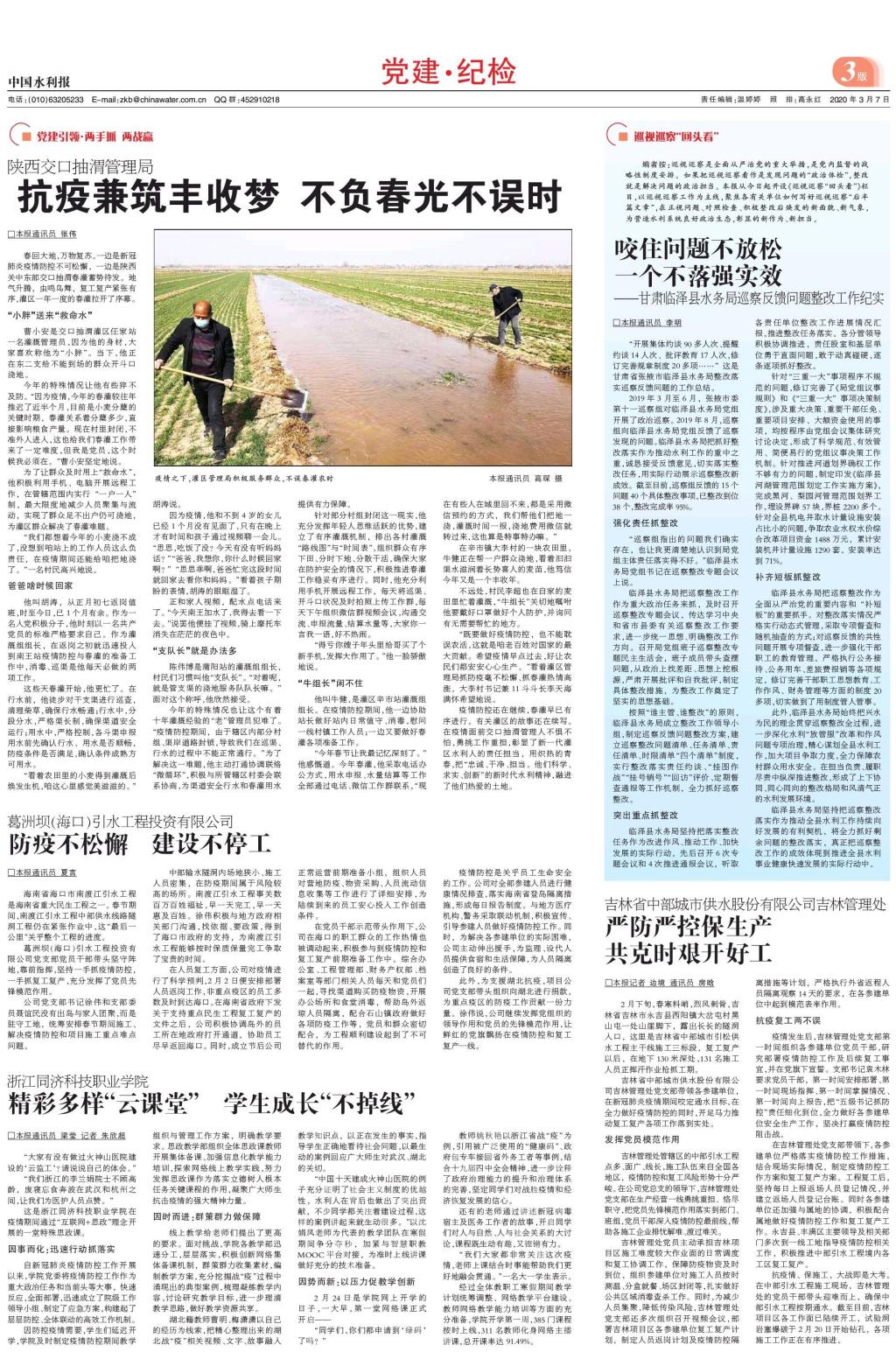 近日,学院积极搭建“云课堂”开展课程思政教育,以及全力护航民生企业复工复产的事迹获得《中国水利报》、省教育厅“教育之江”官微报道。