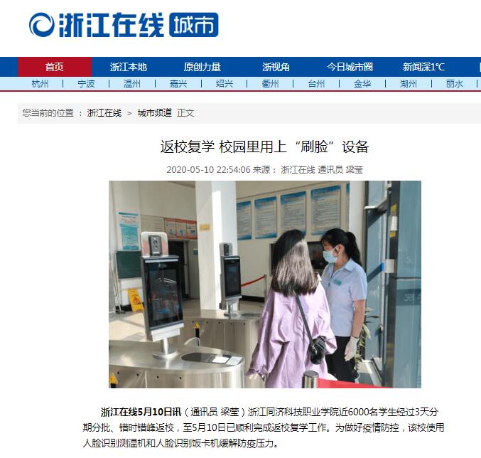 【返校进行时】浙江在线:返校复学 校园里用上“刷脸”设备
