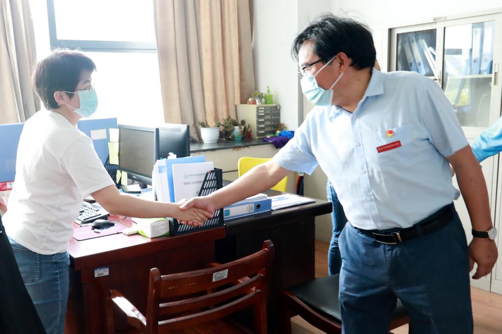 5月15日,学院党委书记江影、院长梁国钱带领院领导班子成员,慰问了疫情发生以来,一直坚守防疫一线岗位、无私奉献的教职员工。院领导们每到一处都与教职工们详细了解防控工作情况,向大家送上学院的关爱和慰问。