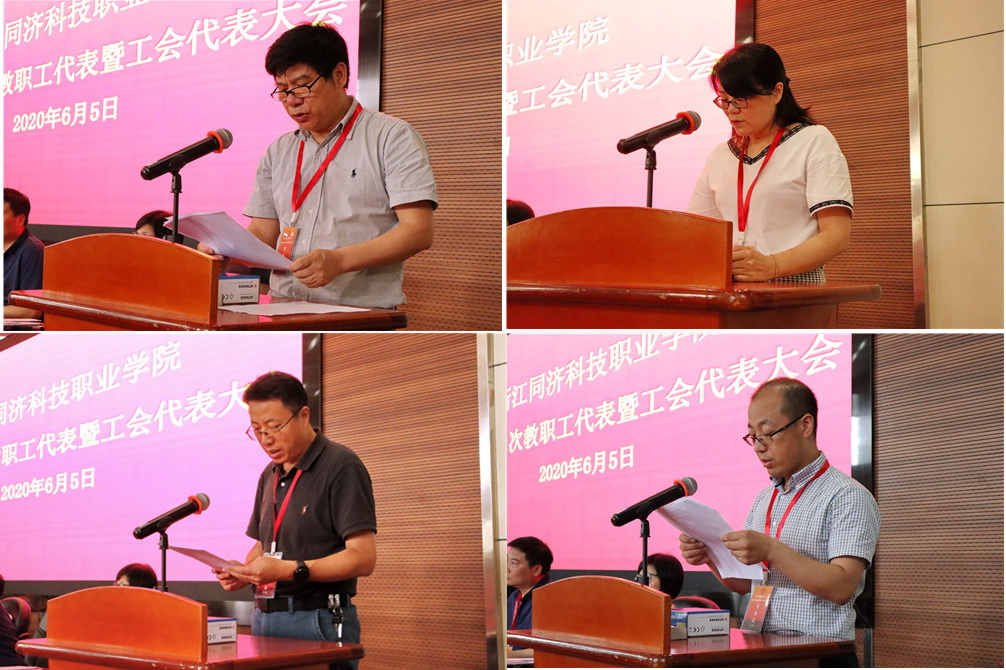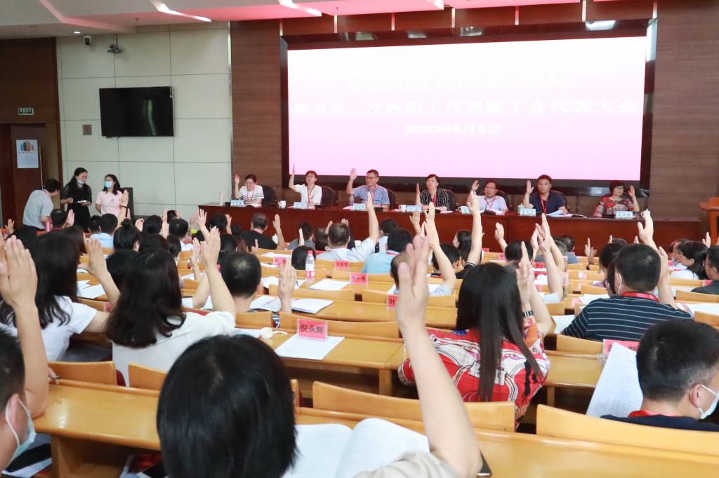 6月5日下午,学院在行政楼一楼报告厅召开五届二次教职工代表暨工会代表大会,学院党政领导班子成员、112名教代会代表和18名列席人员参加了会议,会议根据场次,由党委副书记、副院长吴宏平,副院长、工会主席朱兆平分别主持。