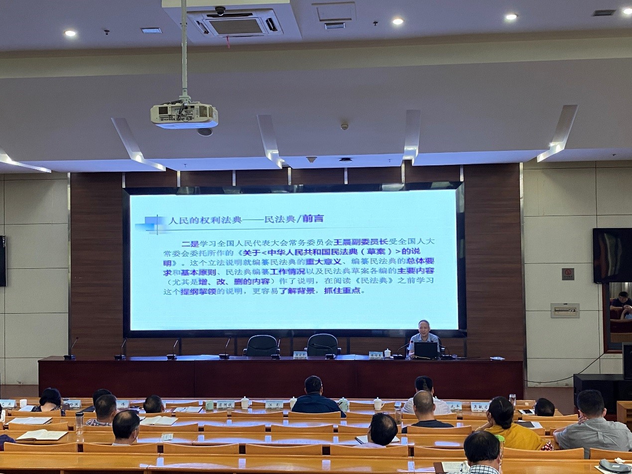 吴宏平副书记在总结讲话中指出,本次讲座既是作为学院党委理论中心组学习的一次扩大会议,也是学院领导干部集体学法和深入开展普法教育工作的一项重要内容。希望通过集中学习,帮助大家进一步了解民法典,深刻领会它的核心要义、所阐释的重点问题。各位领导干部要带头学、主动学,努力当好民法典的宣传者、维护者和推动者。要牢固树立起法治观念,加强管理依法治校,不断提高学院治理体系和治理能力现代化水平。同时,作为一名教育工作者,我们也有义务、有责任向学生讲清楚、宣传好民法典,教育引导学生树立法治观念、善用法治思维,不断提高守法意识、权利意识和规则意识,为推动国家法治文明进步、加快社会主义现代化强国建设夯实根基。