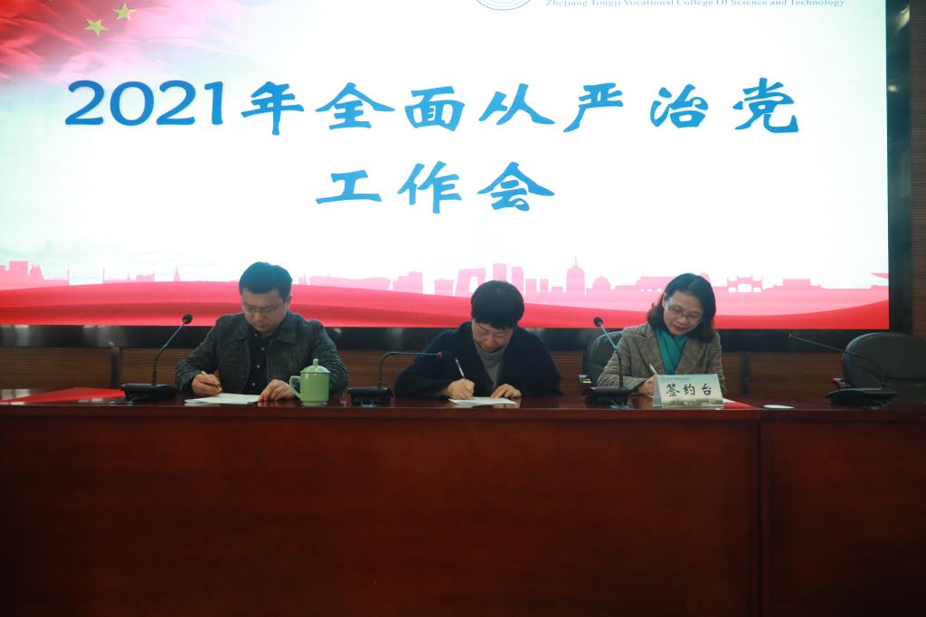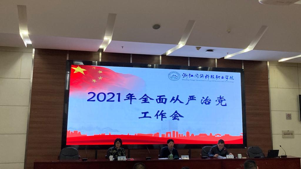 党委书记江影在讲话中指出,2020年学校党委坚持以习近平新时代中国特色社会主义思想为指导,全面贯彻落实中央、省委有关全面从严治党各项决策部署,以党的政治建设为统领,对标重要窗口建设目标,主动扛起从严治党主体责任,不断深化“清廉同科”建设,风清气正的校园生态持续深化巩固,全面从严治党工作取得了新成效。她分析学校全面从严治党面临的新目标、新要求、新形势,对2021年从严治党工作进行了部署:一是从严抓好政治建设,切实将“两个维护”具体化落实落细;二是从严抓好思想建设,以党史学习教育为牵引推动党的创新理论入脑入心;三是从严抓好组织建设,将基层组织和干部队伍建好建强;四是从严抓好作风和纪律建设,让求真务实、清正廉洁的新风正气不断充盈;五是从严抓好系统智治,健全推进全面从严治党的保障机制,深入推进学校全面从严治党向纵深发展。