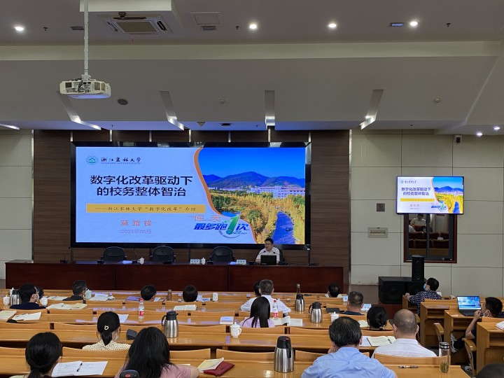 最后,会议还邀请了浙江农林大学信息中心主任莫路锋教授,围绕“数字化改革驱动下的校务整体智治”做专题讲座。