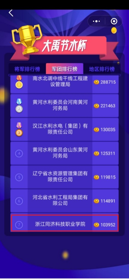 近日,由水利部在2021年“安全生产月”组织开展的手机答题类活动“水安将军”安全生产知识竞赛活动圆满结束。我校广泛发动师生员工积极参与“水安将军”水利安全生产知识网络竞赛,最终获得总分103952分,总成绩位列全国第七名、全省第一名,并荣获由水利部颁发的“优秀集体奖”,同时获得浙江赛区“优秀集体奖”“优秀组织奖”。