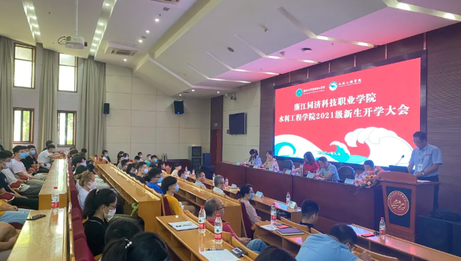 2021年9月18日上午,水利工程学院在行政楼一楼报告厅举办2021级水利学院新生开学大会,因疫情防控,本次大会线上线下同步组织,20个新生班级分别在各自教室收看直播。水利工程学院院长、党总支副书记刘进宝,水利工程学院党总支书记、副院长叶乐,水利工程学院副院长金斌斌,浙江省正邦水电建设有限公司副总经理吴志夫,水利学院书记石杨老师出席大会,新生代表、全体班主任、辅导员、专业部主任参加本次大会。本次会议由水利学院书记石杨老师主持。