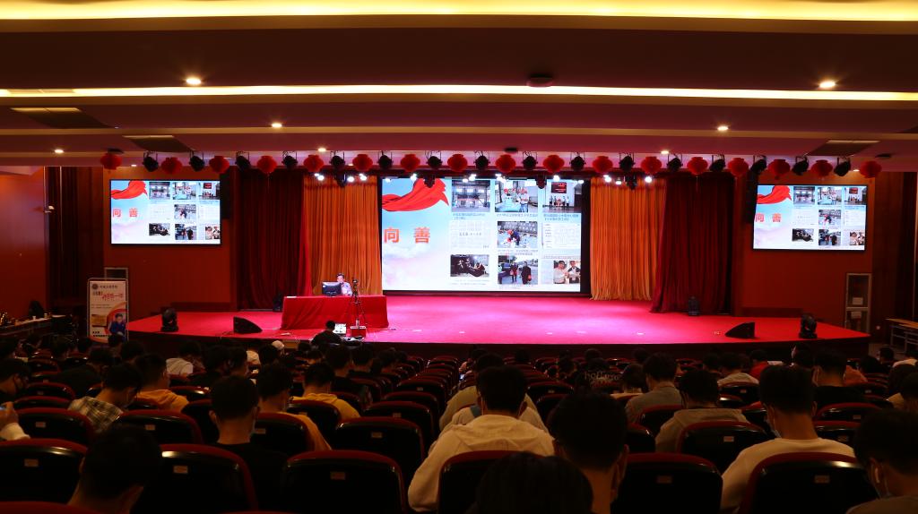 2021年10月12日晚,机电工程学院举办了“青春有我、强国有我——2021级新生开学第一课”,该活动采用线上线下同步进行的方式,机电工程学院党总支书记、院长金永琪,党总支副书记章卉,副院长孙连栋,相关班主任,辅导员以及2021级全体新生参加了典礼。