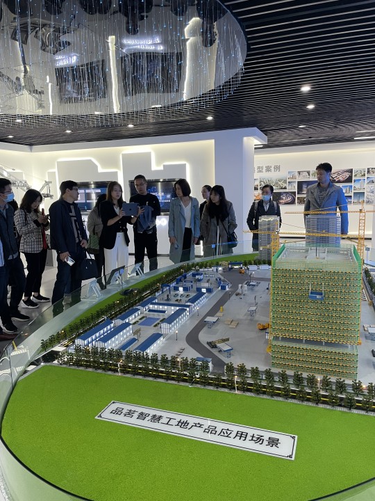公司教育事业部总经理倪斌、总工程师盛黎等相关技术研发人员等表示热烈欢迎,并带领全体教师参观了品茗公司教育事业部的各个研究机构和公司当前主要科技产品,尤其重点参观了智慧工地云平台的智慧管理系统和最新的智慧工地监测设备等。然后在品茗教育事业部会议室召开了“智慧工地技术研究所”的启动会,并重点针对建筑工程技术(智能建造)专业群的实践教学基地建设展开了热烈的讨论。