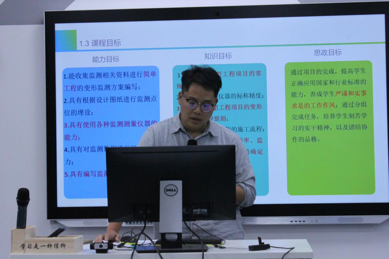 虽然新教师走上讲台的时间不长,在讲课细节方面还显得有些稚嫩,但在教学形态、课程思政等方面很有特色,可圈可点。邱利群老师的《变形监测技术》,讲述如何通过完成项目,培养学生自主学习规范的能力,养成学生严谨的工作作风;通过分组完成任务,培养学生刻苦学习的实干精神,以及团结协作的品格。黄霄宇老师的《BIM应用技术》,以BIM理论知识、Revit软件操作、后期漫游渲染为主要内容,围绕“1+X”考评标准,结合水利类专业课程体系,运用任务驱动、项目教学、成果导向、小组讨论等多种教学方式,使学生掌握BIM基础建模及软件Revit使用,发挥BIM在实际水利工程项目中的应用优势。涂玉虹老师的《水利工程施工技术》,综合运用云课堂、在浙学等信息化教学手段,指导学生掌握作为专业技术人才所必需的水利工程施工技术的基本知识和技能,同时将思政考核纳入态度考核,积极引导学生树立良好的职业道德,弘扬“忠诚、干净、担当、科学、求实、创新”的新时代水利精神。王晓龙老师的《水利工程施工与组织》旨在培养一批全面综合发展的施工技术及管理人员,以综合实践为手段,除了教学专业知识外,培养学生的学习能力和组织能力,强调社会能力和职业能力的提高。