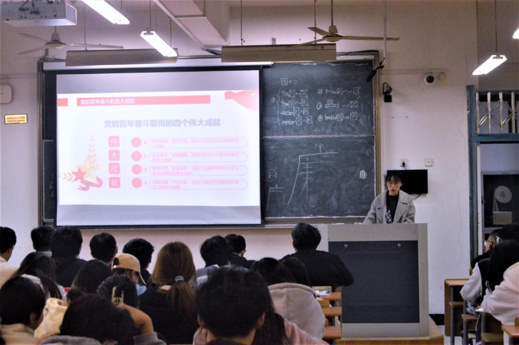 王婷老师首先向学员们梳理了全会的涵义以及十九届中央委员会历次全会的主题,并向同学们系统概述了十九届六中全会公报全文内容,重点解读了《中共中央关于党的百年奋斗重大成就和历史经验的决议》,带领学员们回顾了中国共产党践行初心与使命的百年历程,详细分析了党的百年奋斗史取得的四个伟大成就及四个历史经验。