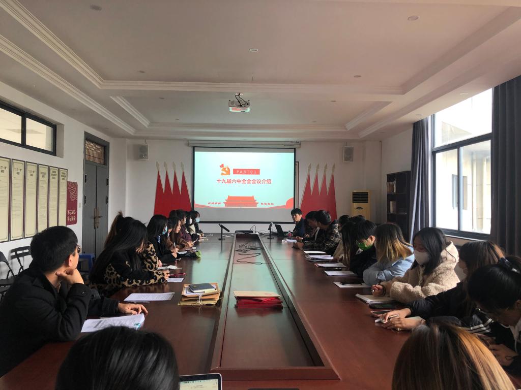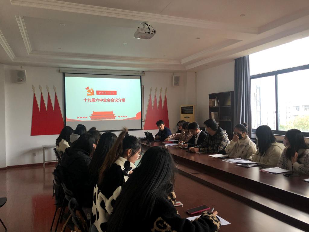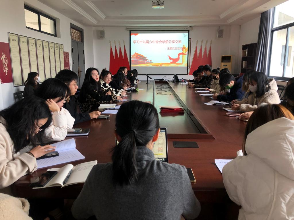 中国共产党的十九届六中全会11月8日在北京召开。一百年来,党团结和带领全党全国各族人民推动革命、建设、改革取得了重大成就、积累了宝贵经验。为深入学习贯彻党的十九届六中全会精神,艺术设计学院学生支部于11月30日在B506会议室开展“百年奋斗,成就辉煌”学习贯彻十九届六中全会精神主题党日活动,由学生支部书记黄君主持,支部正式、预备党员参加。