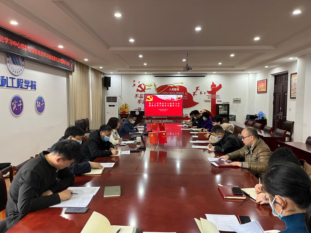 12月8日下午,水利学院党总支召开第十二次学院理论学习中心组学习会,会议专题学习了党的十九届六中全会精神。学院党总支书记叶乐主持会议,学院党政班子成员、党总支委员、各党支部支委参加会议。学校党史学习教育专班胡海清主任、肖德斌老师来学院开展旁听巡听工作。