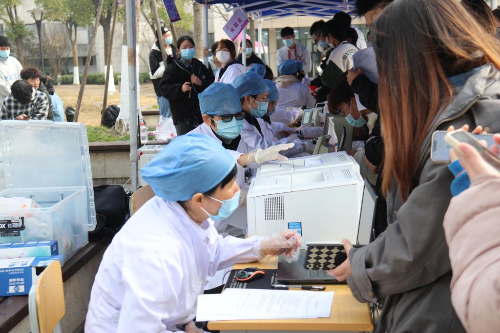 为做好疫情防控工作,此次无偿献血活动组织工作较以往更为严密,一是提前开展无偿献血预报名工作,针对疫情防控,从积极报名1200多名学生中选出500余名学生参加;二是做好分流工作,按照无偿献血时间安排,分为6个时间段,分配给各二级学院报名确认的学生和上午无课的学生;三是现场秩序维护,做到排队有序、献血有序,在工作人员和志愿者的引导下,同学们自觉戴好口罩,前后保持一定距离,亮码、测温、填表、体检、初筛全程做好防控措施,保障安全。从早上10点一直到晚上7点,历时10余个小时,成功采血345人,献血量达到105310毫升。