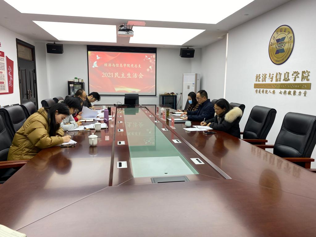 1月11日,经信学院党总支在B306召开2021年度民主生活会,学校副校长姜伟、党史学习教育专班和组织部相关人员到会指导。
