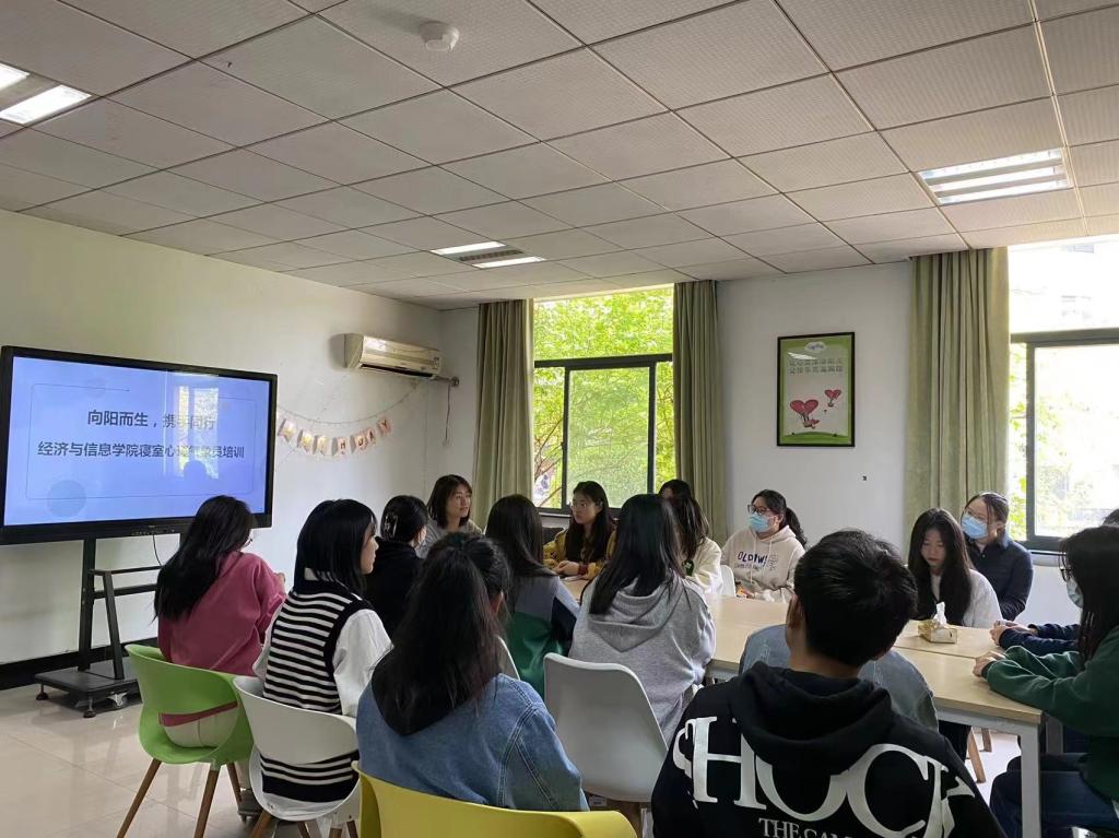 为进一步加强学院心理健康教育工作,提升大学生心理素质,完善校园心理健康教育四级网络运行体系,充分发挥学生自我教育、自我管理、自我服务的能力,4月4日下午经信学院在B001组织开展了寝室心理气象员培训活动,本次活动由经信学院心理辅导员王超群老师主持。