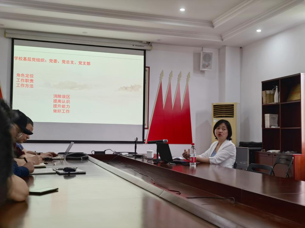 会前,吴玲洪部长介绍了培训的目的和意义。培训中,吴部长以学校基层党组织建制分类为切入点,从学院在党建工作中发现的问题入手破解党务工作,指出做好党支部工作要发挥书记的模范带头作用、要注重支委的协调联动、要运用制度建立长效机制;要找准党建工作切入点,明确“围绕业务抓党建,抓好党建促进业务”的工作思路,把支部工作延伸到教育教学实际需要的工作中去,把提高基层党组织战斗力与圆满完成业务目标任务有机结合,从根本上解决党建、业务“两张皮”问题;要增强服务意识,以主动服从、服务于专业发展这一中心为出发点,把解决思想问题与解决实际问题相结合,把党建工作渗透其中,把工作中的难点作为工作的重点;要求党务工作人员,要多学习党的政策文件,积累经验,把党组织建强建优。
