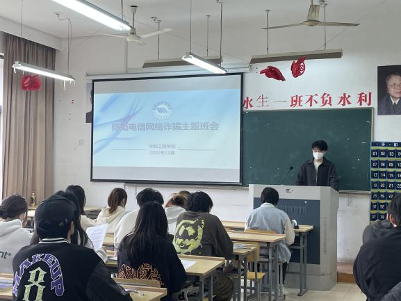 为进一步增强学生的法制观念,提高反诈防骗自我保护意识和能力,水利工程学院开展“反电信诈骗专题活动月”之“全民防诈,从我做起”主题班会。