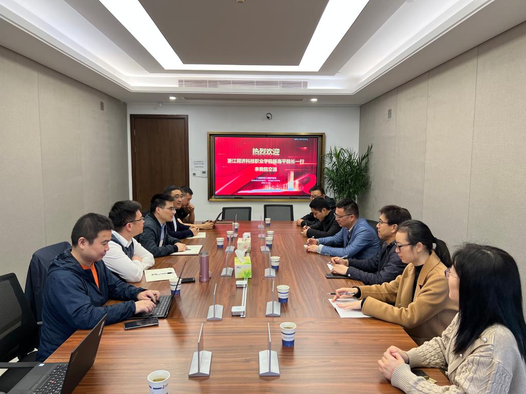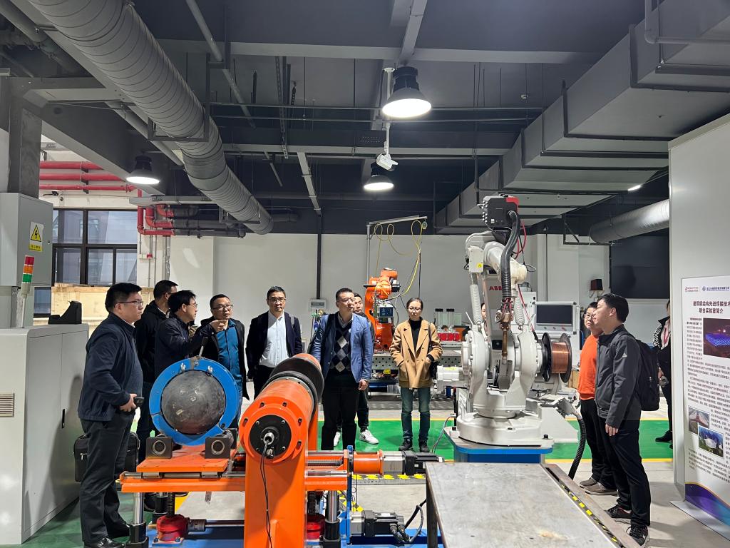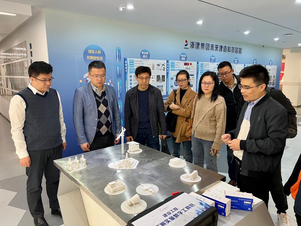 首先,调研队伍来到位于杭州西湖区文三西路的浙江省建工集团工程研究总院,总经理郑夏翊、总工程师苏红来等相关技术研发人员对我校调研团队表示热烈欢迎,并带领大家参观了浙江建工集团近年来在智能建造领域的最新科技产品及企业在“高、大、难、尖”工程领域取得的各项成果。浙江省建工集团是全国首批房屋建筑工程施工总承包特级、大型国有企业,集团下设30多家分支机构,施工辐射32个省市以及阿尔及利亚等国家,集团创出国家和省部级数百项成果和荣誉。2022年,集团项目荣获“入选浙江省机器人典型应用场景”,该项目是集团探索推进机器人产业发展新模式新路径,紧跟“十四五”建筑业发展规划要求,推动智能建造与建筑工业化协同发展、加快推进新型建筑工业化,实现绿色低碳发展取得的创新成果。期间,各专业部教师与科技研发人员就机器人钢构件长焊缝智能焊接施工场景与实训教学项目展开了热烈的讨论。