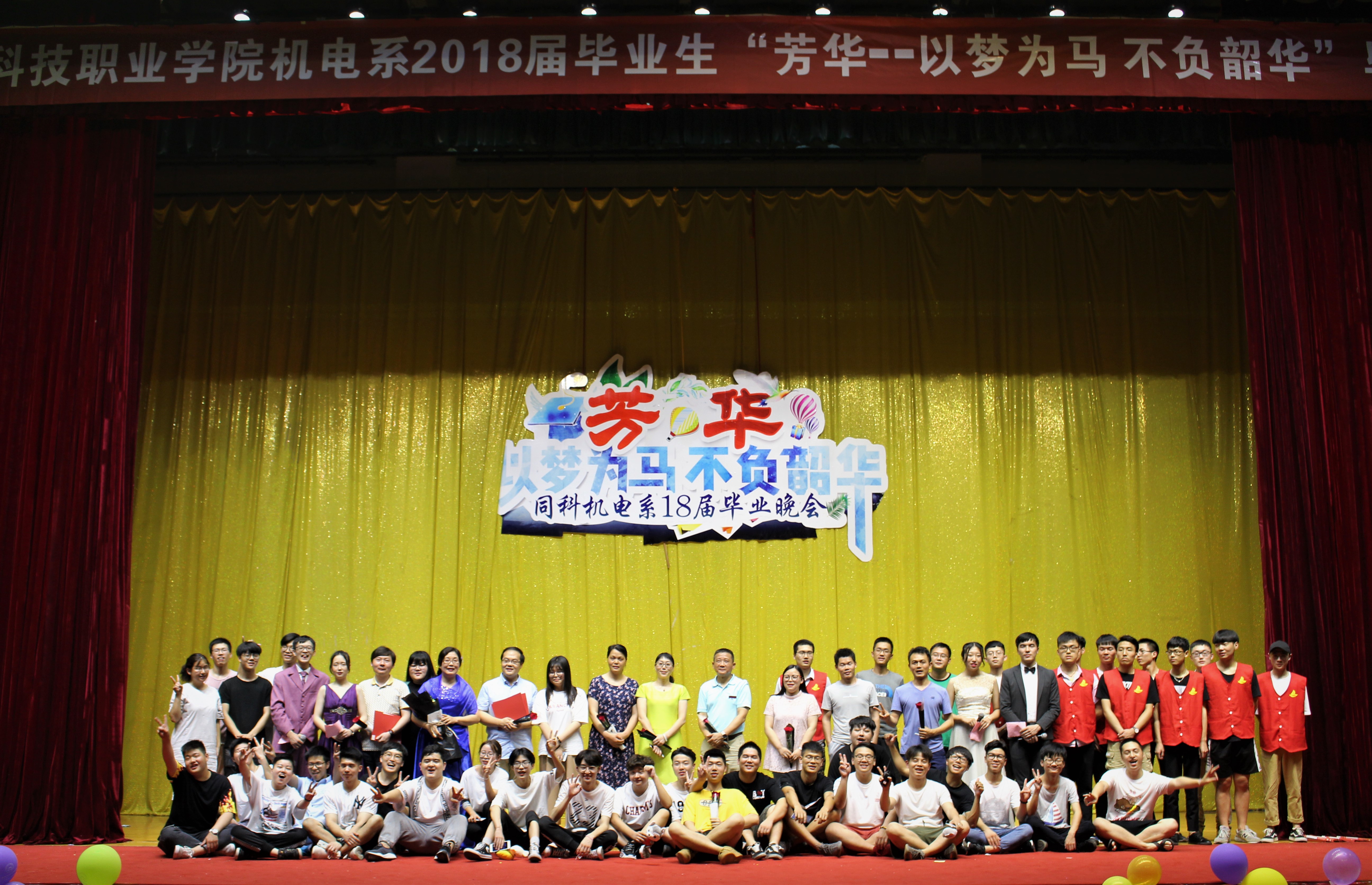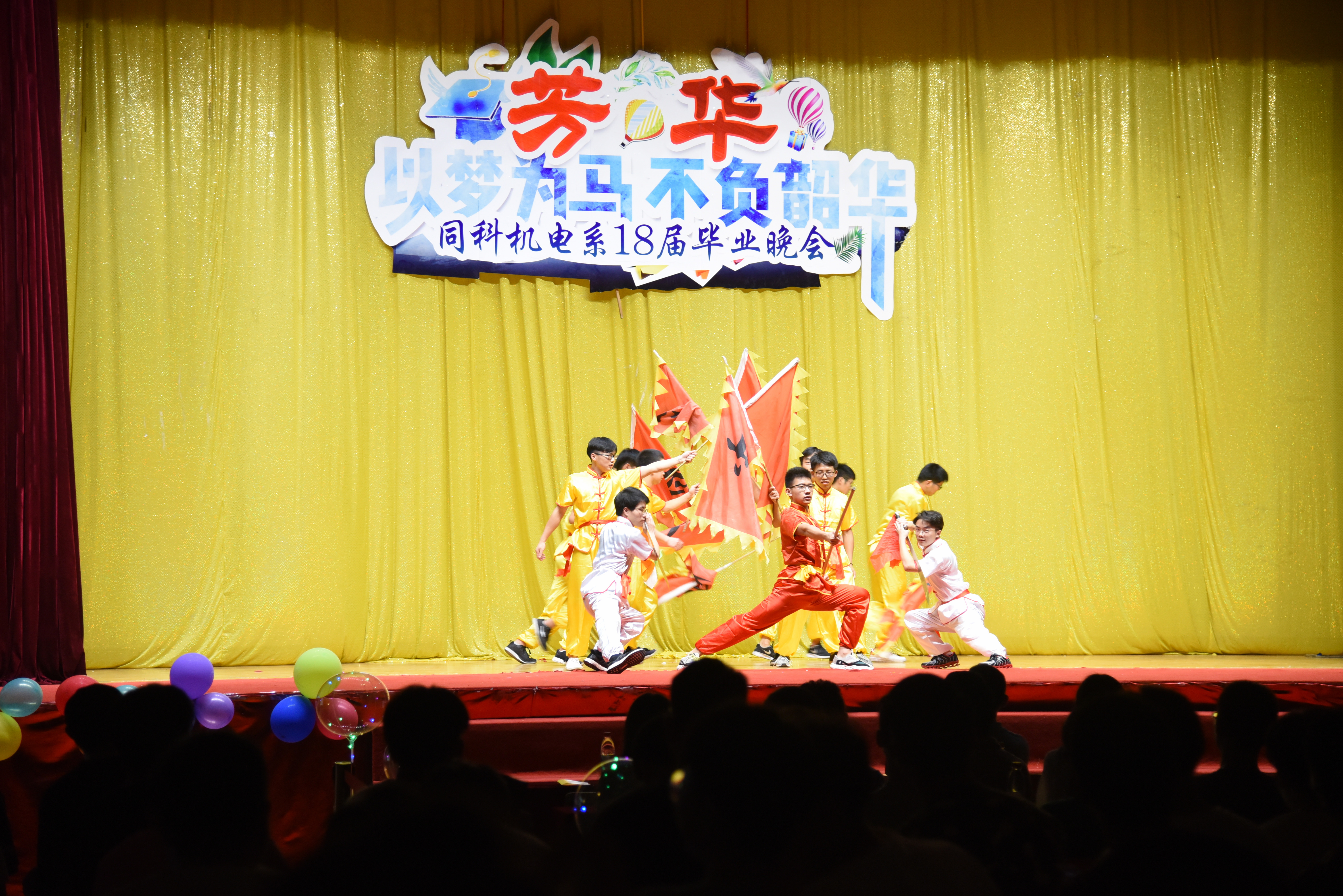 活力四射的现代舞表演《Good boy》为整场晚会拉开了序幕。四位青春靓丽的主持人上场,2018届毕业晚会正式开始。一首别样的吉他歌曲串烧《海阔天空》,一段律动的B-box《节奏的艺术》,机电系的吴文杰等四位青春少年的精彩演出,让我们领略到了机电学子的风采和别出心裁和十足创意;院武术队演绎的《武之魂》,整齐划一的动作,别具匠心的编排,刚柔并济,豪情万丈,如行云流水,又不失霸气十足,向观众们展示了同科人的坚毅与柔情;由机电系舞蹈队创作的《雷人舞》表演,给观众们带来欢笑的同时,也将2015级毕业生带回了往昔排练表演的思绪与回忆之中;挖掘机乐队《都选C》、系舞蹈队《律动的青春》,在劲歌热舞的带动下,现场气氛层叠推进,展现了青春的激情与活力。小品《上课请听讲》带我们走进课堂,重温课堂,细细品味那段时光,聆听老师的教诲;创意沙画《后会无期》,以一位毕业生的视角,回顾三年的大学时光,磁性的独白,字里行间透露出浓浓的离别愁绪与难忘的校园记忆,离别之情和感恩之情相互交织,深深触动了在场观众的心。晚会在许小青老师一曲《难忘今宵》中缓缓落下帷幕。系领导和15级班主任代表为毕业生送上殷切的祝福,希望他们能走好未来之路,前程似锦,活出精彩人生。同科机电系的大门永远向大家敞开,期待每一位毕业生都能常回家看看。