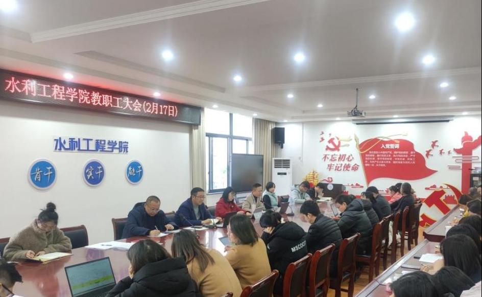 为进一步凝聚力量,谋划新篇,确保各项工作有序开展,2月17日下午,水利工程学院在A319会议室召开新学期教职工大会。学院党政班子成员、全体教职工出席会议,会议由党总支书记叶乐主持。