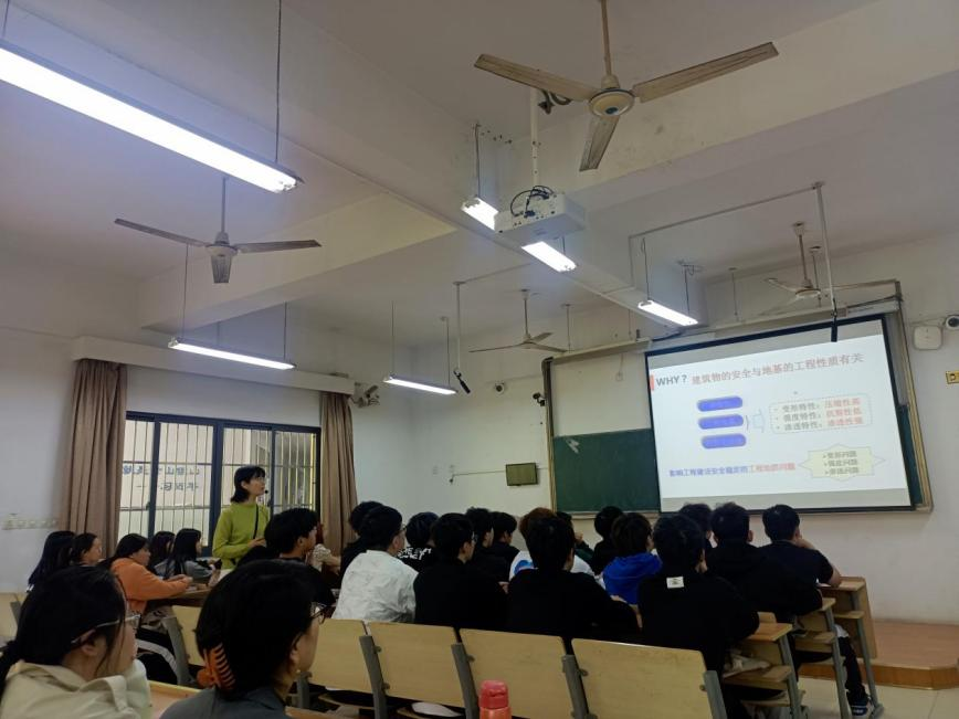 主讲课程分别为《工程力学与结构》和《工程地质与土工技术》。课上两位教师充分利用教学信息化资源,采用了多元化的教学方式和手段,有效地体现了学生的主体地位和教师的主导作用。其中,刘述丽老师做了第一次课的教学展示。她用“4W”(Who、Why、What、how)为主线,从行业岗位需求出发,带领学生理解作为一名水利技术人员,学习《工程地质与土工技术》课程的意义、课程学习目标、学习方法等,并对学生的学习过程和学习成果提出要求,为全院教师,尤其是新进教师很好地展示了第一次课的教法。胡玉珊老师以新安江水电站的建设案例中“叫高山低头,叫河水让路”的水利工程开发精神,以及水利青年的“忠诚、干净、担当”底色为引导,切入课程内容,通过头脑风暴、道具展示、讲解等教学方式激发学生对课程内容的好奇心和兴趣,结合生活实际,深入浅出地讲解知识点,使学生不仅能够掌握必要的理论知识,还锻炼了自主思考能力。