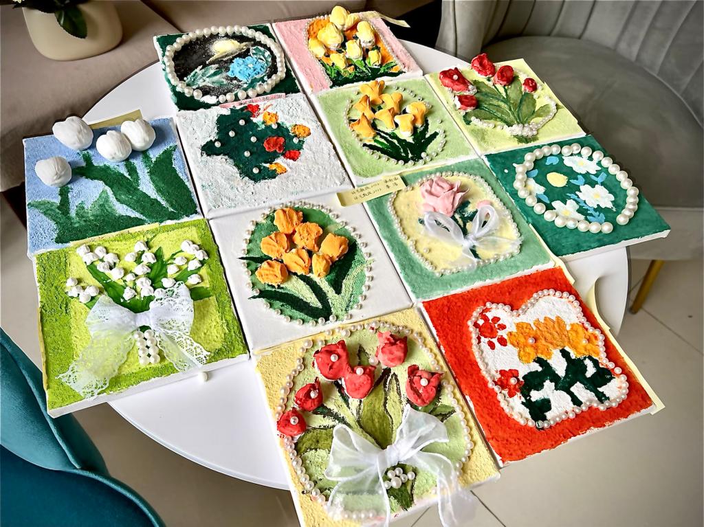 活动以小组为单位,自由组队合作完成一幅3D肌理画作,在制作与交流的过程中,师生体验了一种新的艺术疗愈形式,了解了石英砂的性状和特性,感受了美妙的创作乐趣。师生通过艺术表达情感,提高了观察力、记忆力、想象力和创造力,培育了美的情趣。