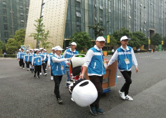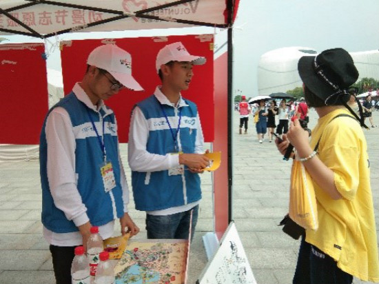 活动期间,在动漫节现场随处可见我院志愿者们忙碌的身影,他们放弃五一休假时间,每天清晨六点半,准时在校门口集合出发赶往动漫节现场,积极投身于志愿服务。部分志愿者们在场馆外微笑亭岗位,仅靠一张桌子、一顶遮阳棚、一个简易药箱以及一叠场馆地图游玩指南,帮助游客引导路线,给身体不适的游客提供药品;另一部分志愿者们在炎炎烈日之下跟随着互动秀的表演人员,穿梭于动漫节场馆外的各个角落,维护表演场地的秩序,保障演出的顺利进行。虽然天气闷热,每天的服务内容都相同,但我院志愿者们始终保持着亲切的微笑和得体的仪容,坚守在自己的岗位,用最佳的精神状态迎接着每一位游客。