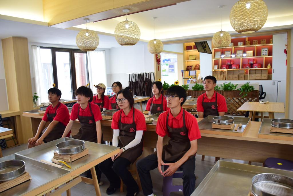 体验非遗项目,感受非遗文化的魅力。传统非遗深藏村民共富创业梦,村民们利用当地非遗资源实现“非遗+旅游”融合发展,走出乡村振兴新路子,实现非物质文化遗产的产业化,让非遗文化敲开乡村致富幸福门。同学们通过亲手实践非遗“片腐”“尺糕”“杜经布”等,对传统工艺和非遗文化进行更深入的学习与传播,并从非遗文化中了解历史,汲取力量,坚定文化自信。
