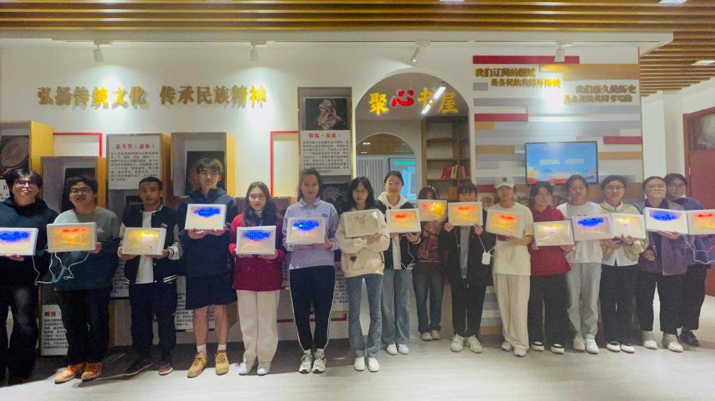 本活动中,各民族的同学相聚于此,当纸雕盒子中的各层纸片堆叠在一起时,正如各民族像石榴籽一样紧紧抱在一起,友好而密切;当纸雕盒子亮起赤色灯光的时候,好似星星之火以燎原之势在神州大地衍生,迅猛而热烈。由此,民族同学间心与心的距离越来越近,同时,同学们也可以从此次活动中感受到非遗纸雕艺人精雕细琢的匠心精神。