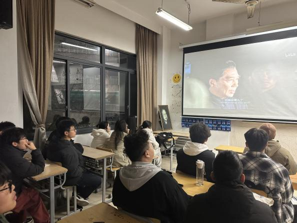 活动当天,同学们自发来到学校周恩来广场,迎着倒春寒风,手捧着鲜花,井然有序地围着总理雕像,低头默哀,回忆周总理与百姓们同甘共苦、血脉相连的无私奉献精神。当晚,班级同学集体观看《周恩来的四个昼夜》,回顾了在严重灾荒的窘迫日子里,周恩来总理来到革命老区河北邯郸伯延公社考察调研,度过难忘的四个昼夜的故事。一帧帧画面,一段段话语,周总理忠诚为民、勤奋工作的精神深深感染了在场的每一位同学。影片结束后,同学们回忆着影片中的艰苦岁月,集体手写卡片,表达自己对伟人精神的深刻感悟,抒发了对伟人事迹的真挚情感。同学们纷纷立下目标,决心将周总理的精神发扬光大,为新时代的社会建设和发展贡献自己的青春和力量。