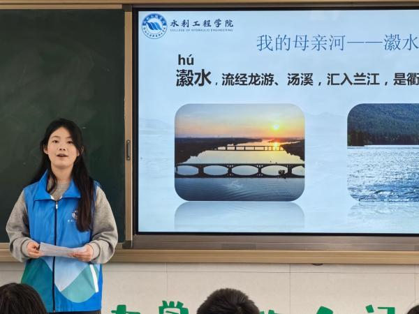 3月22日下午,在衙前镇团委、衙前农村小学校、水利学院团总支共同组织下,一堂以“守护生命之源,共筑美好家园”为主题的亲水讲堂走进衙前农小。水利学院“小水滴”志愿宣讲员们通过生动讲解和图片、视频展示,给同学们科普了我省的水情现状和历史文化,同学们一边认真听讲一边参与互动回答问题,现场气氛十分活跃。认真听完这堂亲水课后,同学们表示,要以身作则,保护水珍惜水关注水,保护我们共同的家园。