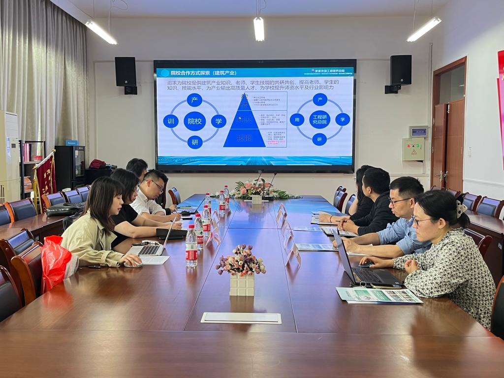 陈剑对浙江省建设投资集团有限股份公司工程研究总院陈敏璐一行的到来表示了欢迎,并简要介绍了建工学院的发展历程与现状、专业结构、课程体系及1+X证书制度试点情况,并重点介绍了学院在培养智能建造领域专业人才的思考与规划。陈敏璐分享了智能建造行业的最新趋势、技术创新点以及面临的挑战和机遇。智能建造结合了先进的信息技术、自动化技术、人工智能等,旨在提升建筑施工的效率、安全性和可持续性,是建筑业转型升级的关键方向。最后,双方就开展智能建造科研合作、实训室建设、师资队伍建设等校企合作等方面展开了交流。