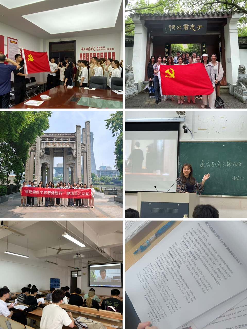 学生党支部组织毕业生党员参观廉洁文化基地——于谦祠,重走一次总书记走过的路——武林门码头,结合习近平总书记关于党风廉政建设、廉洁文化建设的重要论述,希望毕业生常怀律己之心,自觉养成廉洁从业的良好习惯。毕业生党员在校进行了“最后一次”重温入党誓词,希望大家始终牢记入党初心,努力践行党员义务和使命担当,心怀“国之大者”,保持一往无前的奋斗姿态,努力成为心中有梦、眼中有光、手中有活、脚下有力、肩上有责的时代新人!