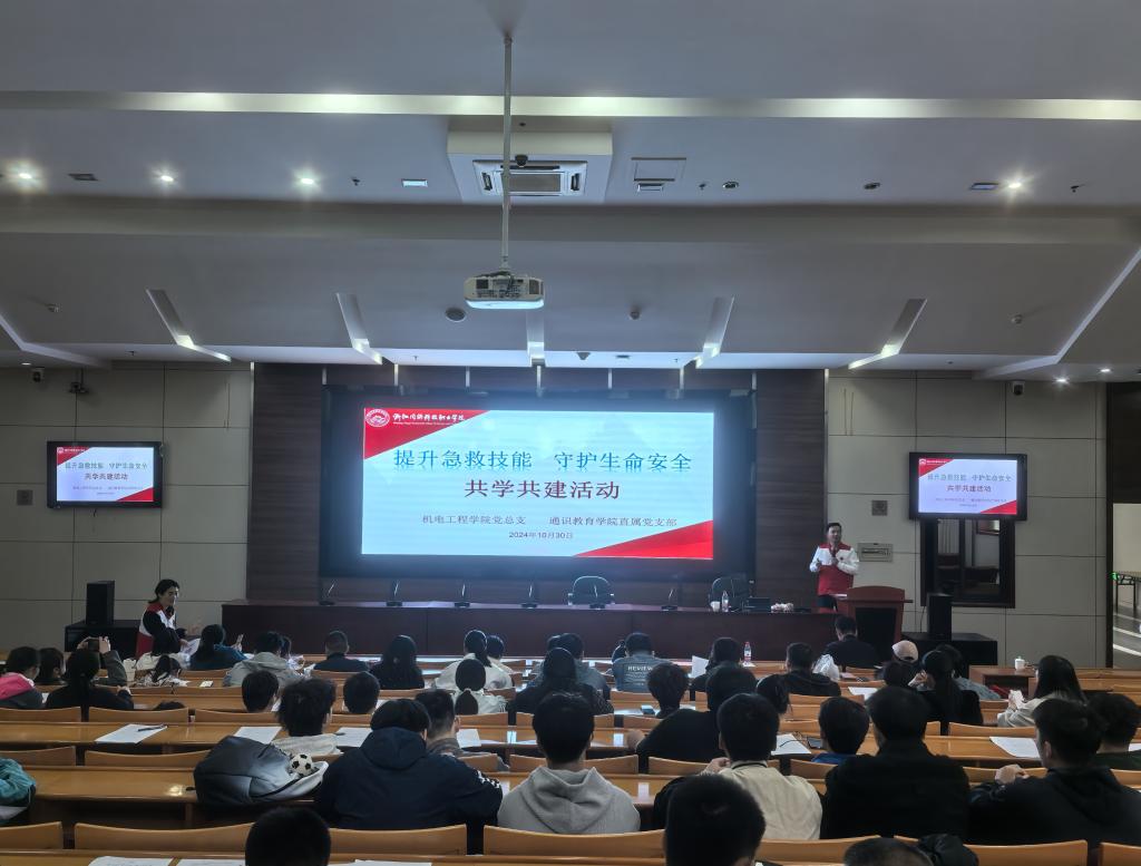 为提升学校师生的急救意识和自救互救能力,10月30日,在组织2023级和2024级全体学生开展体质健康测试之前,通识教育学院直属党支部与机电学院学生党支部联合开展“学急救技能,护生命平安”共学共建活动。参加培训的人员除通识学院和机电学院的师生,还有来自水利学院、建工学院、经信学院和艺设学院的辅导员们以及安保部人员,共60余人参加活动。