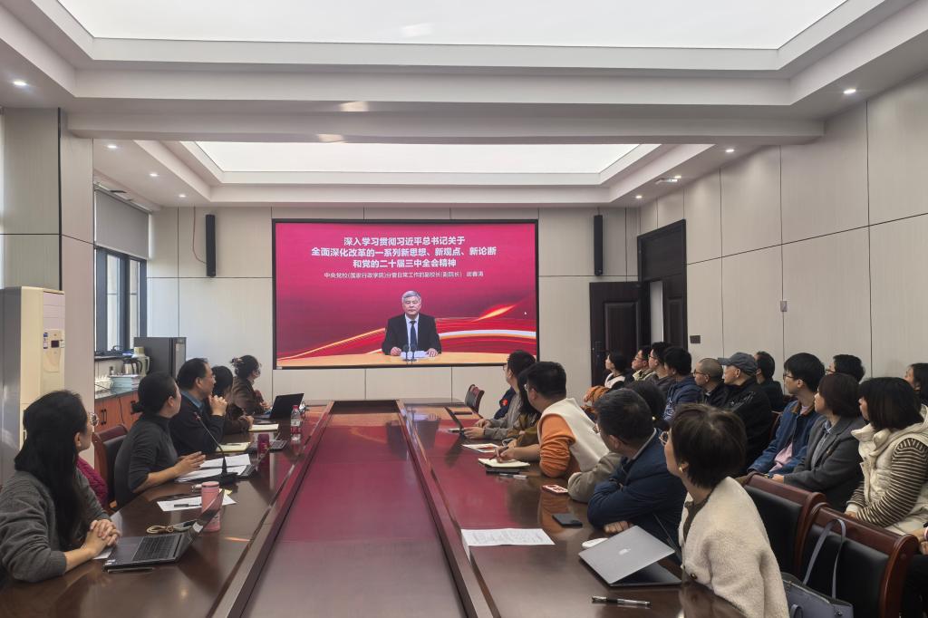 党总支书记章卉传达了学校《关于组织开展党员学习贯彻党的二十届三中全会精神培训的通知》,介绍了本次培训的内容和具体要求,强调要把学习宣传贯彻党的二十届三中全会精神作为学院当前和今后一个时期的重大政治任务,统筹谋划、周密安排,营造浓厚氛围,全面准确、深入系统地把全会精神学习好、宣传好、贯彻好。