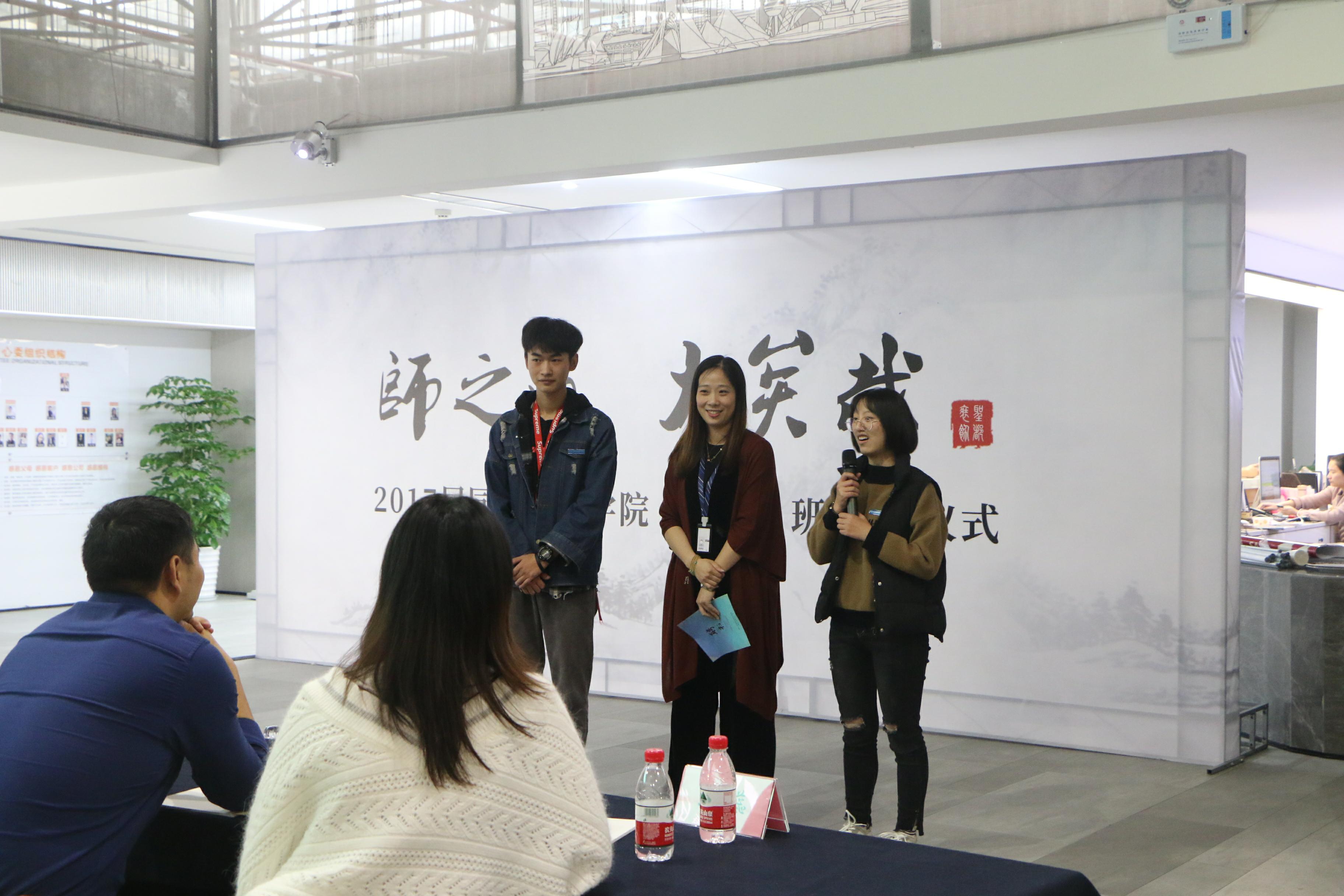 仪式上,首先“圣都班”35名学生郑重地向师傅敬茶、鞠躬行拜师礼,一鞠躬,感谢师傅辛勤栽培,无私奉献;二鞠躬,认真学习技能知识;三鞠躬,发奋努力早出成果!其次,双方通过互动,进行了师徒结对;最后师徒代表分别作了表态发言,师傅代表表示一定会不遗余力地尽好自己的带教职责,将自己的经验积累全部教给学生,为徒弟们的快速、优质成长付出最大的努力;学生代表表示珍惜机会,把握机遇,虚心请教、踏实学习,争取早日出师。拜师礼成后,现场签订了“师徒结对”协议书;艺设系领导还代表学院向导师们颁发了聘书;系主任于会泉和圣都装饰萧山公司部门经理王金燕分别代表学院和企业向学生、向导师提出了希望和建议。