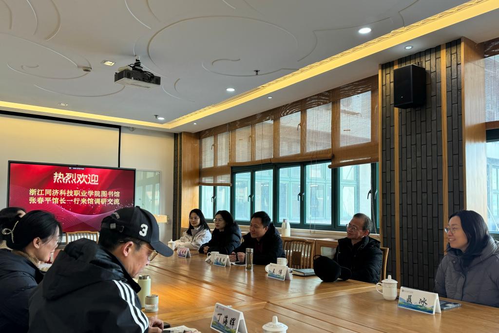 12月17日,图书馆馆长张春平、副馆长王伟等一行5人赴浙江建设职业技术学院图书馆就提高图书馆资源利用率、吸引学生进馆等方面进行专题调研。浙江建设职业技术学院图书馆馆长蔡陈燕、读者部负责人等共同接待了来访人员,双方进行了深入交流。