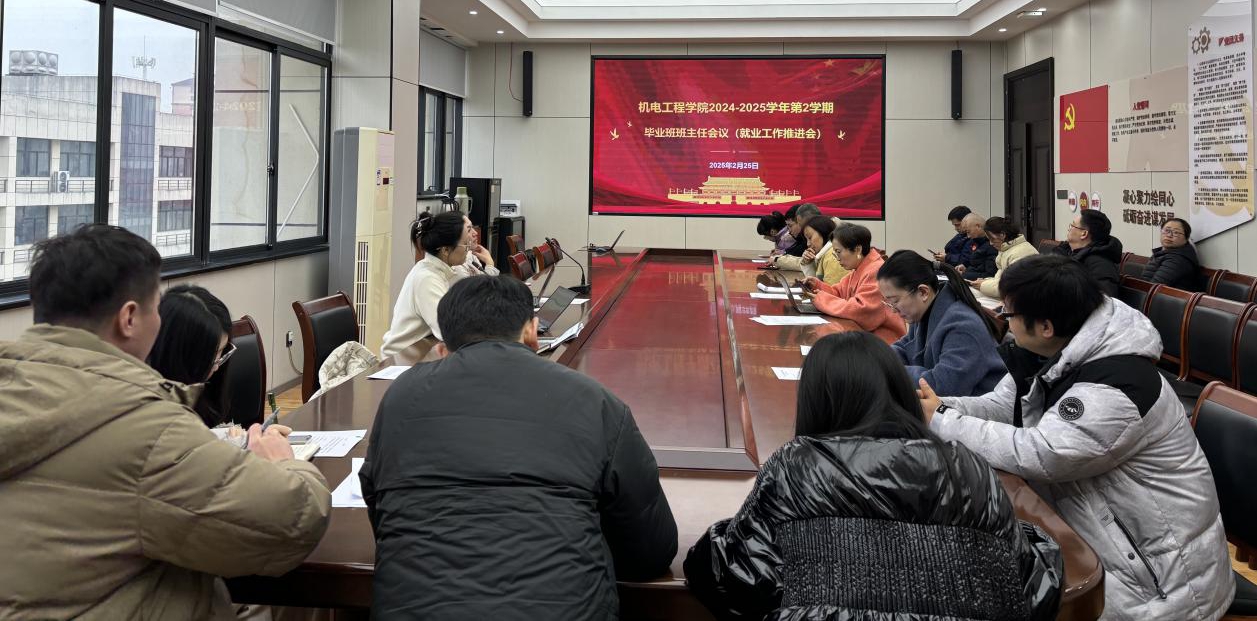 为进一步做深做实做细毕业班就业指导工作,推进学院2025届毕业生高质量就业。2月25日下午,机电工程学院在钱江楼513会议室召开2025届毕业班就业工作推进会。会议由党总支副书记徐菁晶主持,党总支书记章卉、各专业部主任、毕业班班主任及联系辅导员参加此次会议。